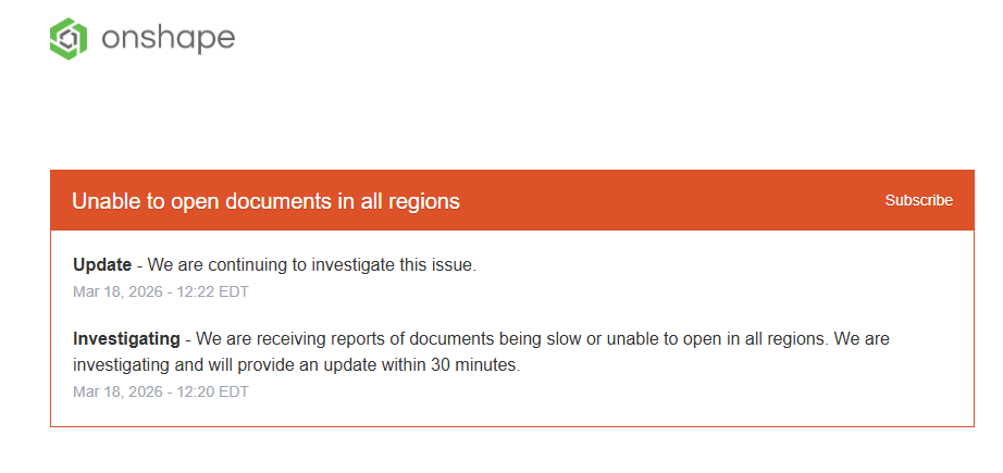 Re: Onshape down in all regions