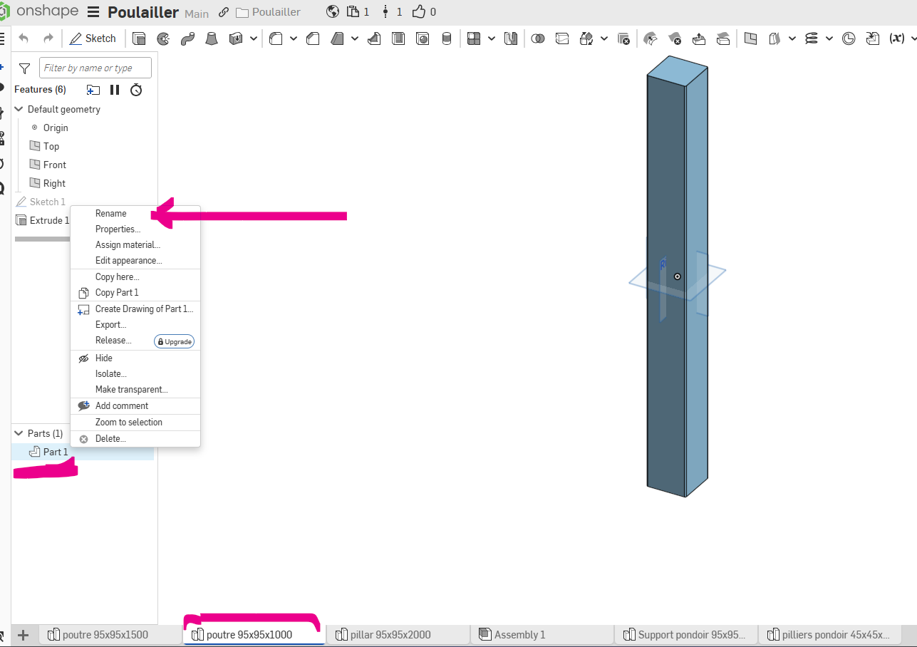 Rename the part not the tab.