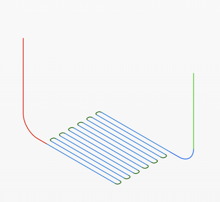 This is the default facing path I first saw when running the program. Full of 90 deg turns: