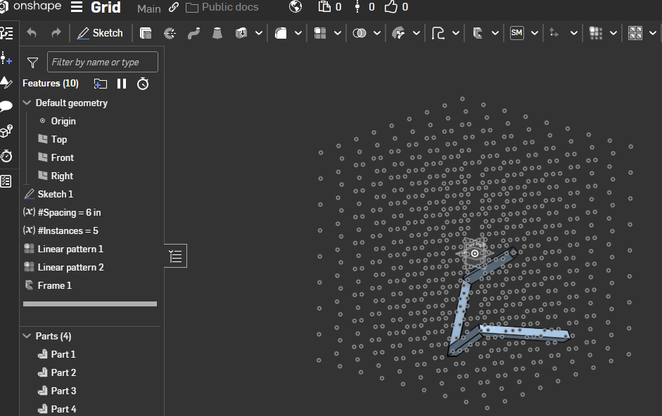 Second: Sketches can be moved, but (usually) don't do that. There's no need.Third: Frames are a powerful way to make lots of related parts, but eh, take a bit of tinkering to understand how they work. Would recommend you take a peek at the learning center and tinker with simple frames to get a sense for how they work.