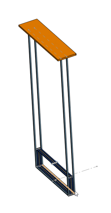 I then made some new plane "the mid plane" and the "benchtop plane" which represents the top plane of the smaller rectangles and the top of the frame (just beneath the wood panel). On those sketches I use the "use" sketch feature (youll want to look that one up) and transferred some of the contents of the base sketch to those sketches. If you can roll back to where that mid sketch is in the feature tree youll see the "skeleton" of the frame.