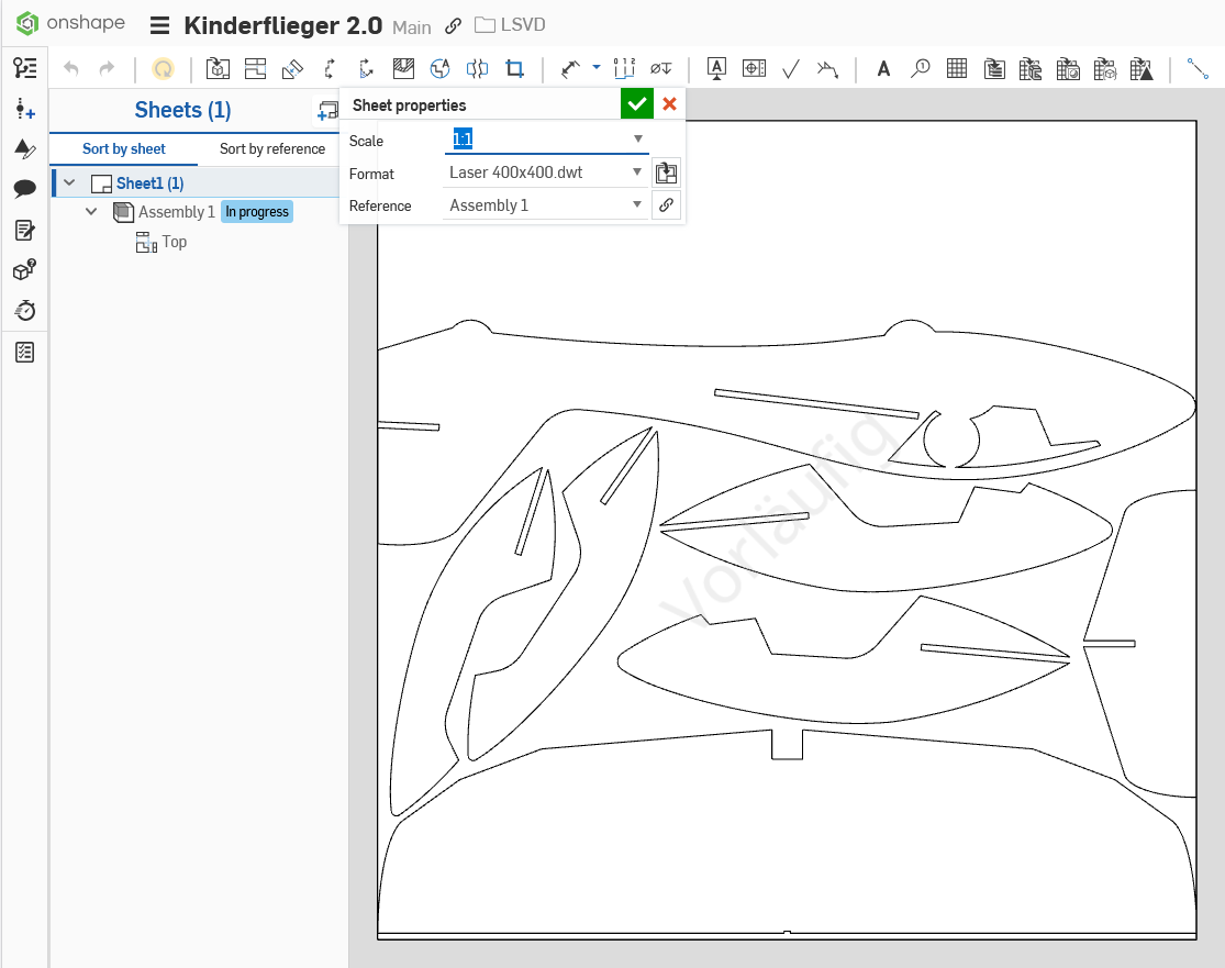 … in theory. There is only one issue I have with this: Onshape always places a rectangle around the sheet borders, which I cannot seeem to get rid off, other than by opening it in an SVG editor and delete it there. Has anybody fount a solution for that?