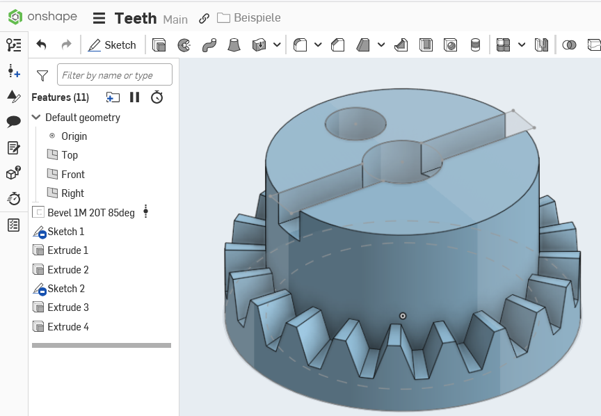 I am working on modeling a plastic part that is wearing out that we cannot get a replacement for so I can 3d print a new one. I have most of it done, but i need to cut teeth into the inside of a lip from an extrusion and cannot figure out how to do this. I would think the easiest way would be to select the outside face of the extrusion, model the tooth pattern and duplicate it around the face, then do a remove extrude on the plane toward the center of the object. Including some reference pictures of the object so you can see what I am trying to describe. I am new to Onshape so I am sure I am just doing it wrong or designed the model wrong from the start.