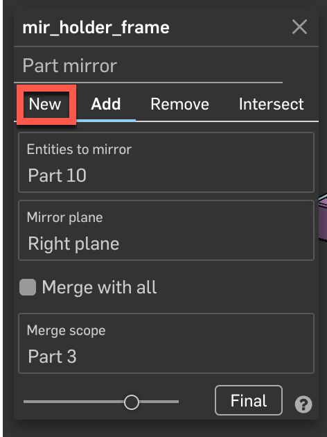 On the other hand, many people might also just mirror the line in your sketch "sk_holder" and then select the two lines for the frame profile. Let me know what you think. Cheers