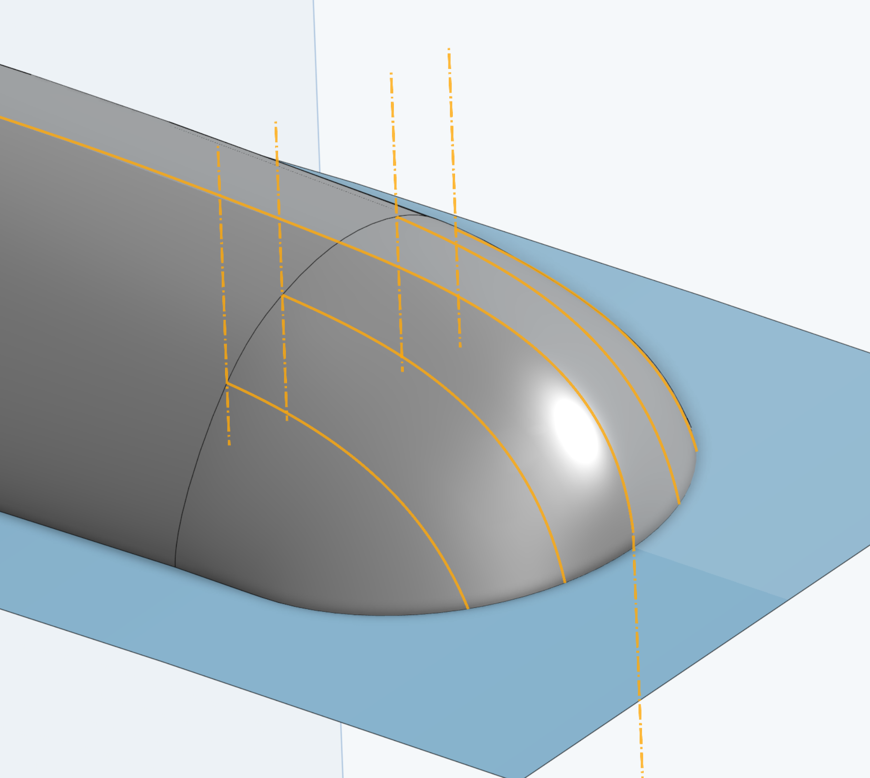 For the top point you can select that top spline you've already drawn. For the bottom I would use the rollback bar to fit a 3 point plane I'll show that next: