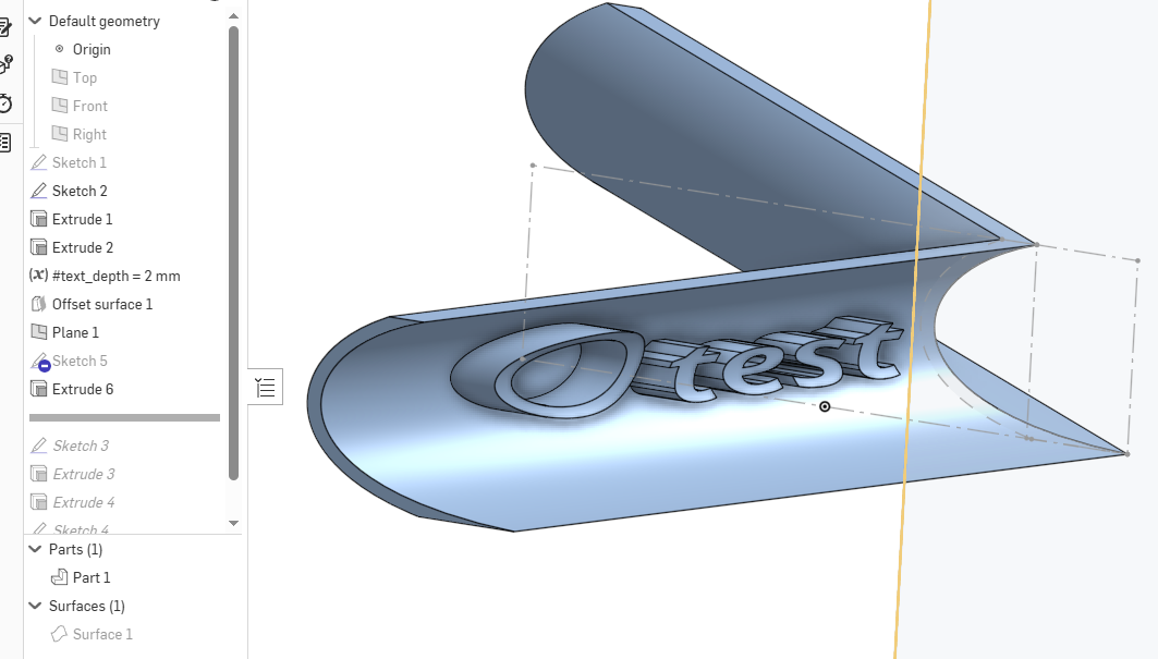 Thank you for takting the time to do this, I learned a lot just following this example but im guessing this wont work for what I want to do based on how the offset surface works being 1mm away in all directions, making the offset surface smaller than the actual plow front face. When using your example to learn, I was able to replicate making an extrusion on the other side when the sketch was within the projected surface, but not when it was below it which makes programatic sense as it dosen't know what its extruding up to, but this is limiting me making the correct extrustions on the actual plow face