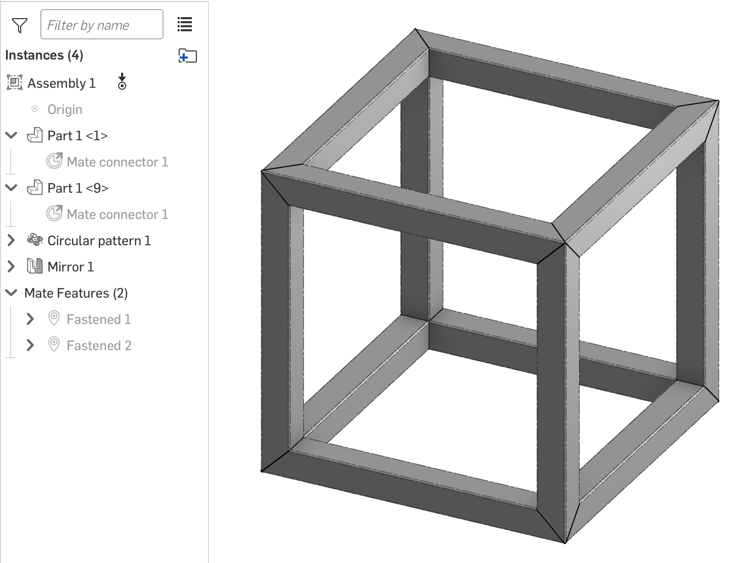So I went for a small cube of aluminium profiling, but I was wondering how you would typically model a 3-way mitre using the Frame feature in Onshape?