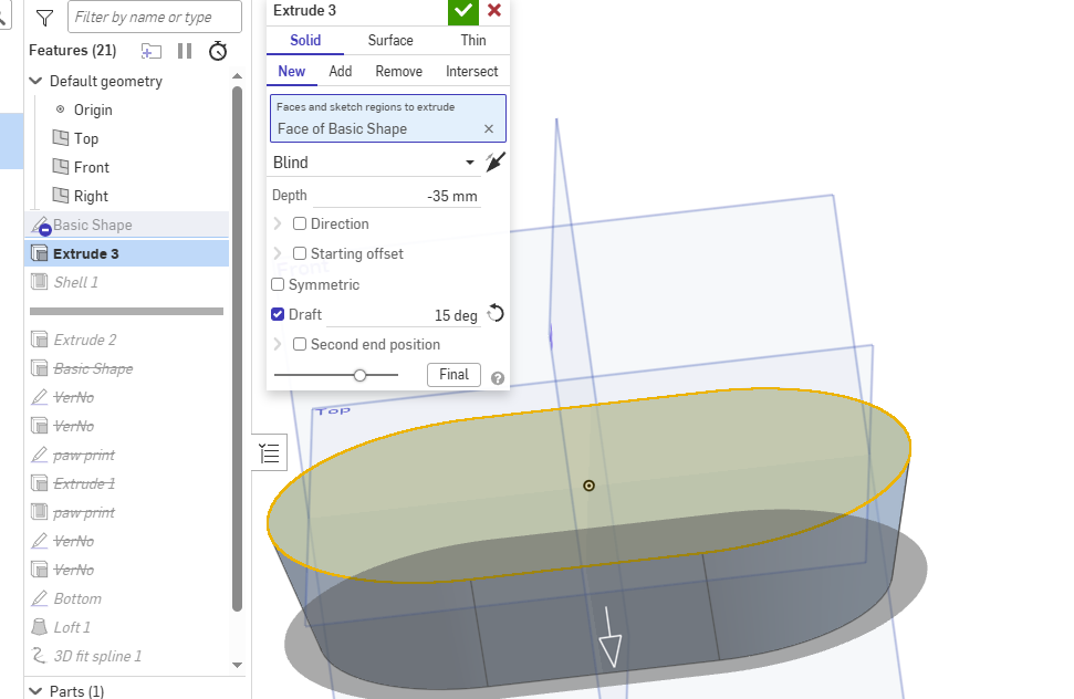 Last post was just an extrude. Here it is with a loft with ends tangent to sketch plane.