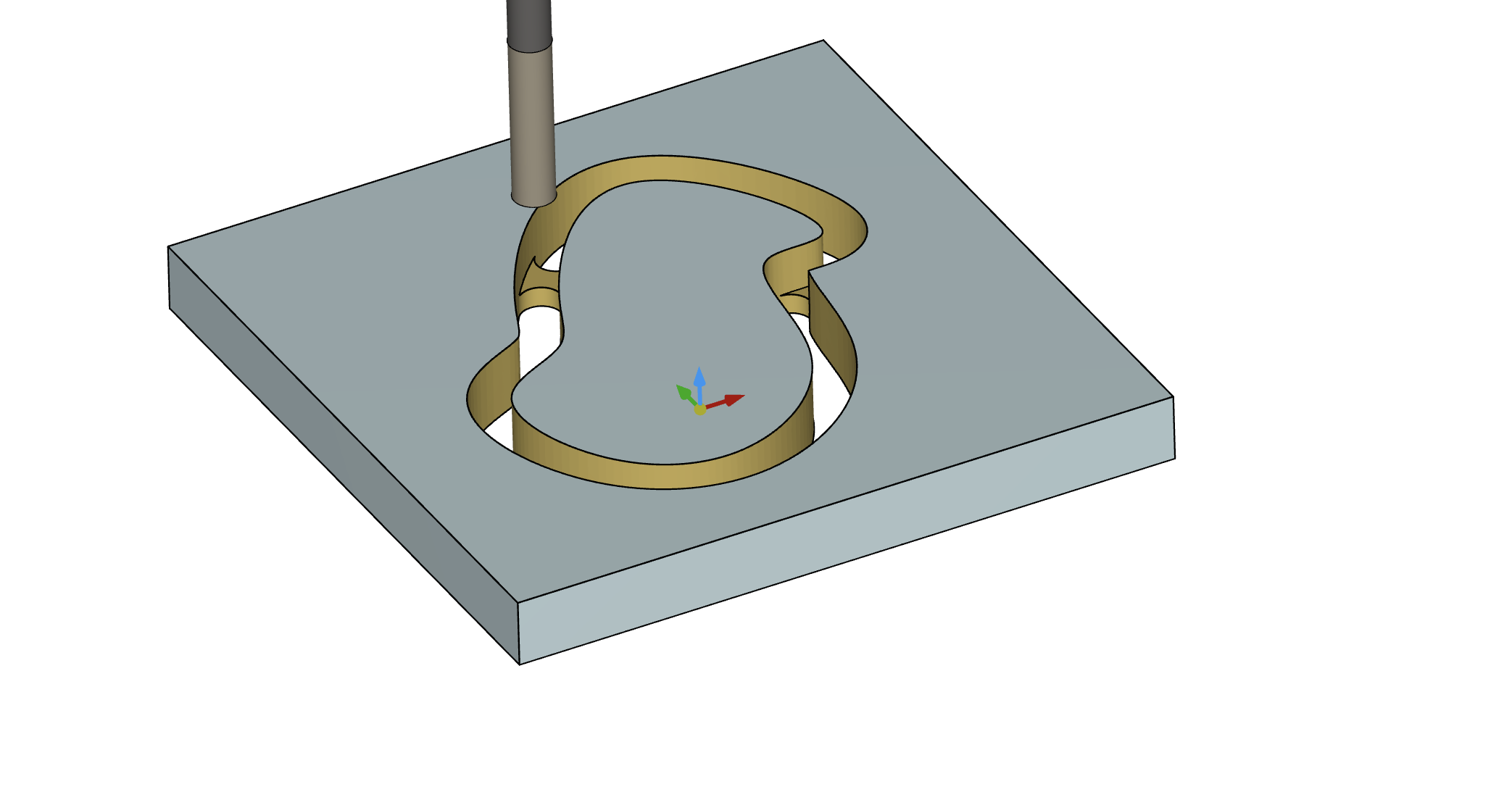 With the layout complete, the parts can easily be derived into a CAM Studio prepopulated with a job, machine, setup, and tool(s).. One 2D Profile toolpath handles the inside profiles, and another handles the outer profile. Updating the job requires selecting the approriate edges in the parts and ensuring their correct orientation as mentioned by @marten_hutchison .