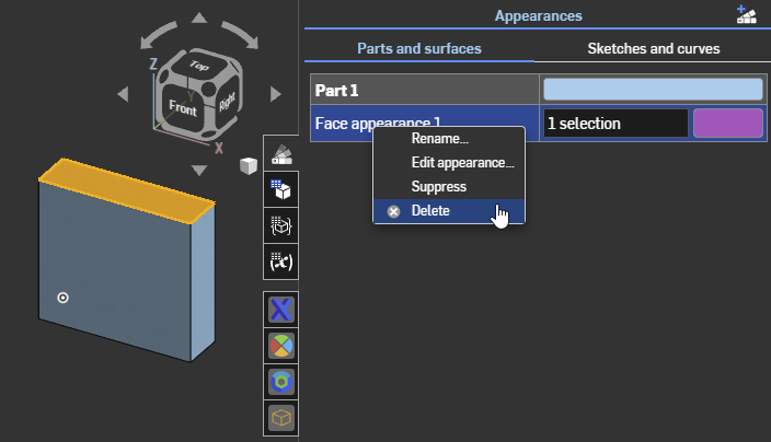 - Right-clicking on a part or face and selecting "Unassign appearance" from the context menu [8]