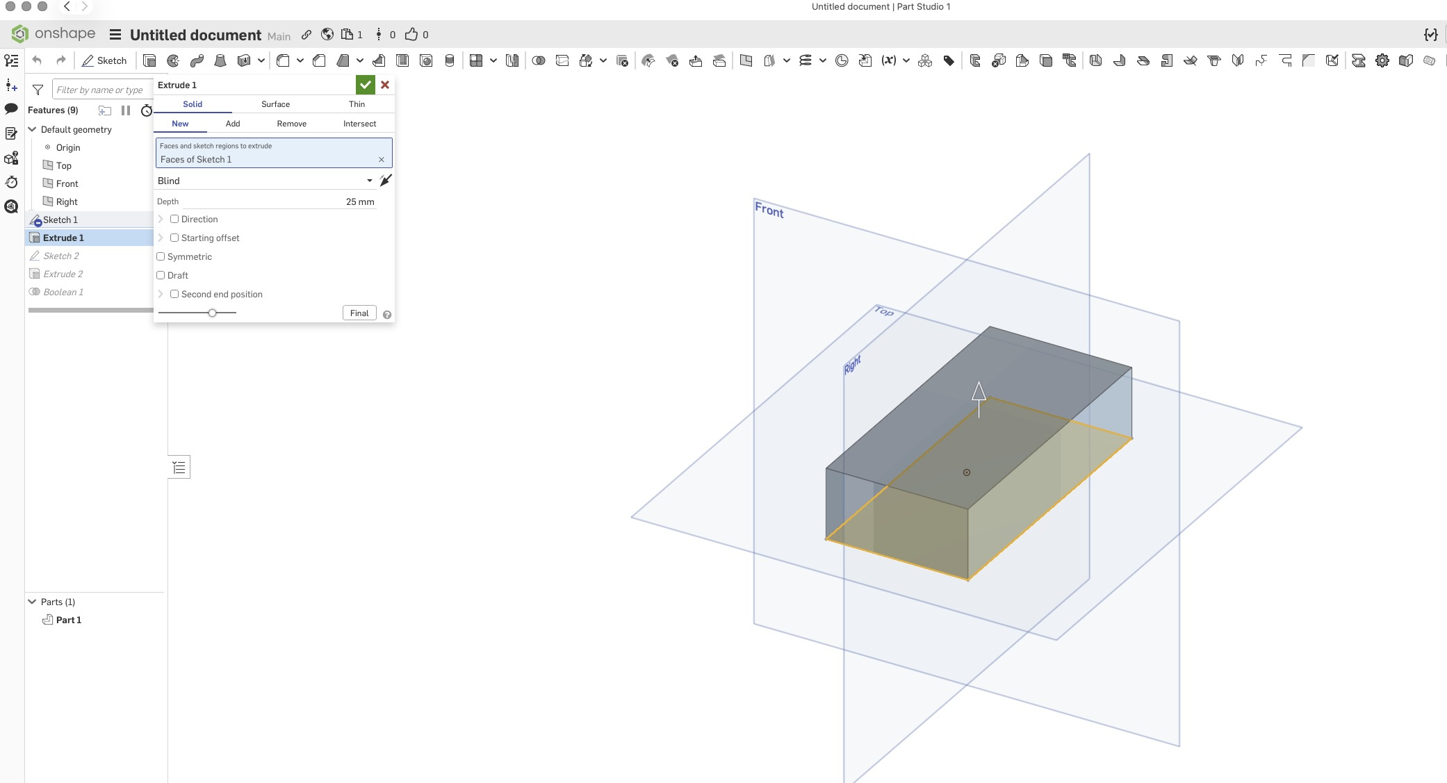 Get rid of your boolean and restart with a new boolean following instructions above. When you subtract part1 from part1 you eliminate part1 and part2 steps up in the list to become part1.