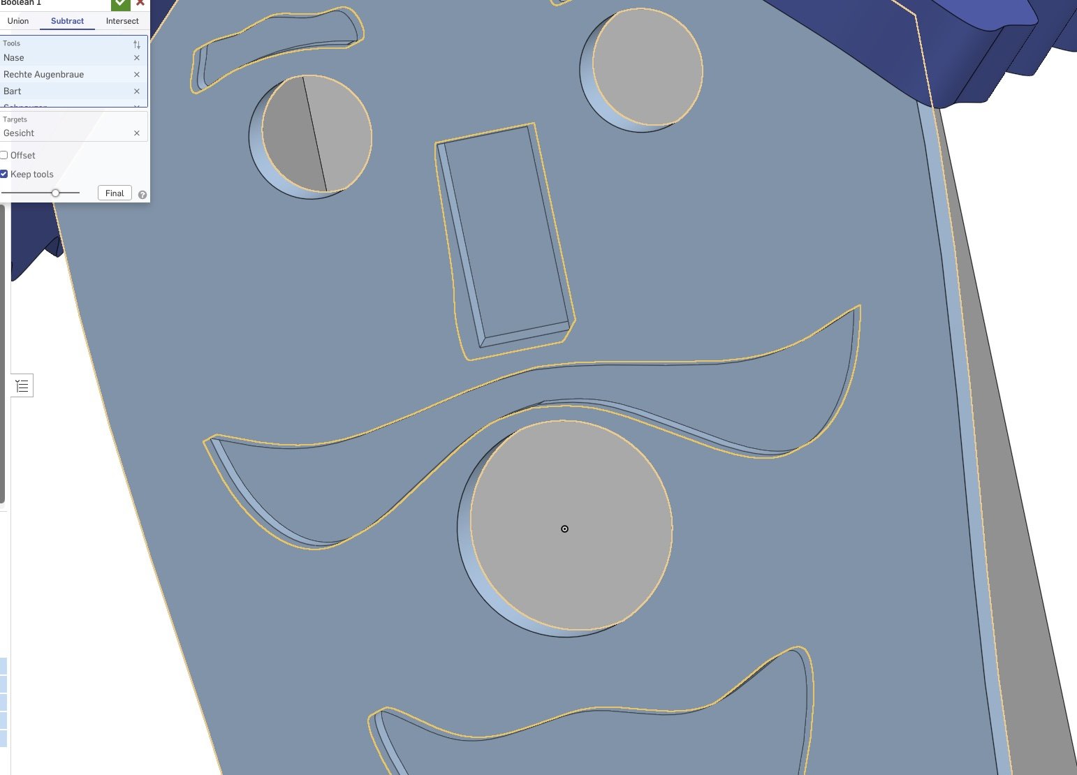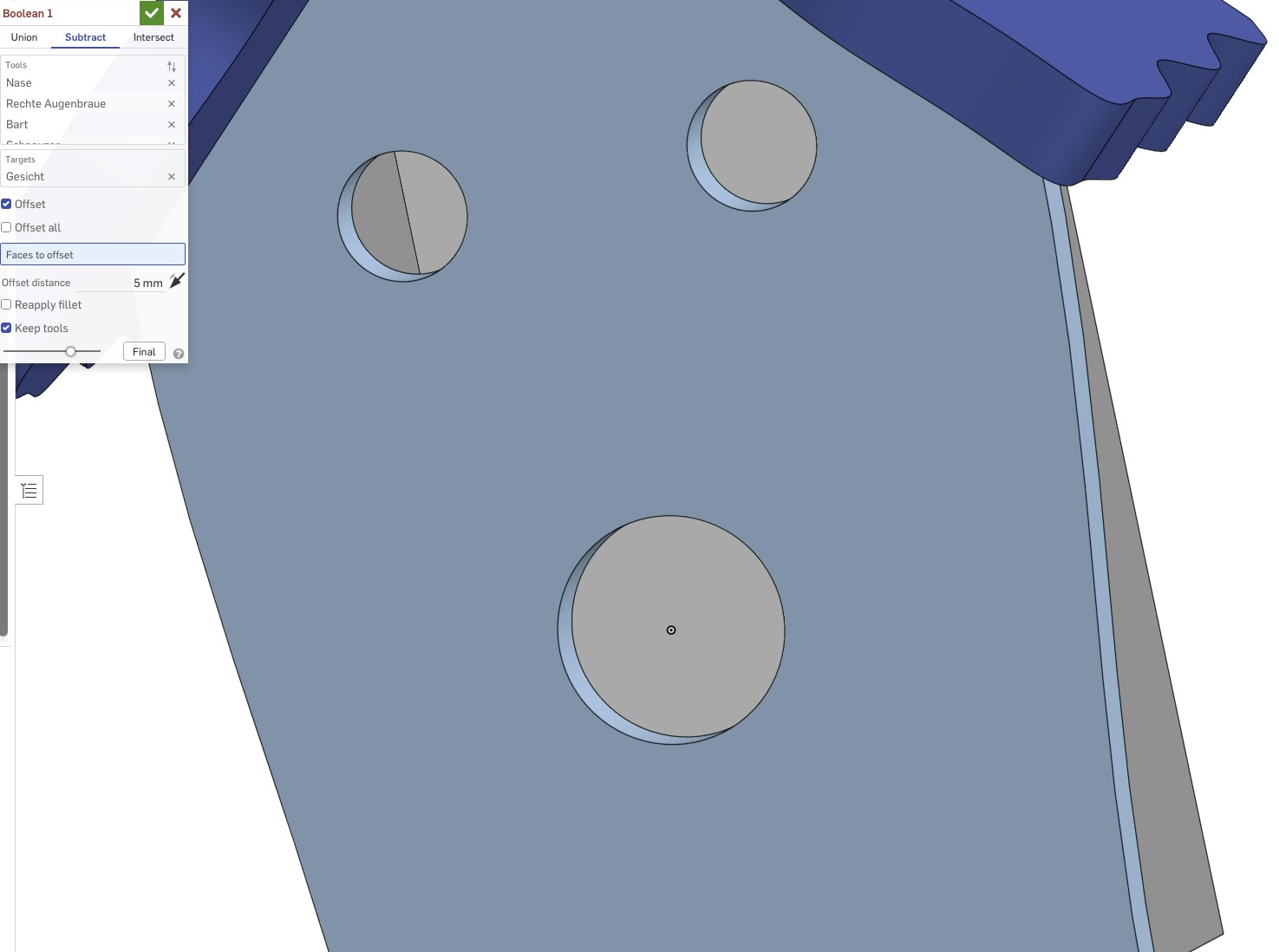 So I enlarged the face of these cut-outs, which were created by the Boolean operation, by 0.1 mm.