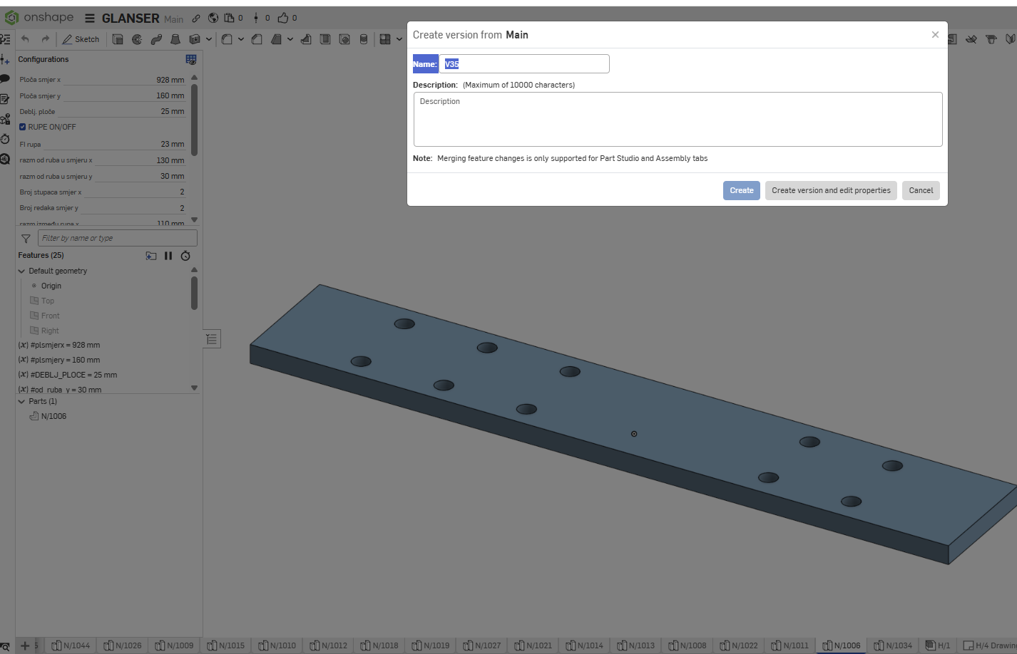 Do I have to make versions of each that configurated part separately, or something like that..Cause when I make version, it looks like it will make version of hole document (Main), not just that configurated part..And I make that versions, but still sometimes when I open that parts N/.. it will be like that first base one-konfig ploča, without holes, not updated. Is it better way to go, that I import that first base part (konfig-ploča) and make assembly of it, so use it like subassembly-inserting in other assembly?