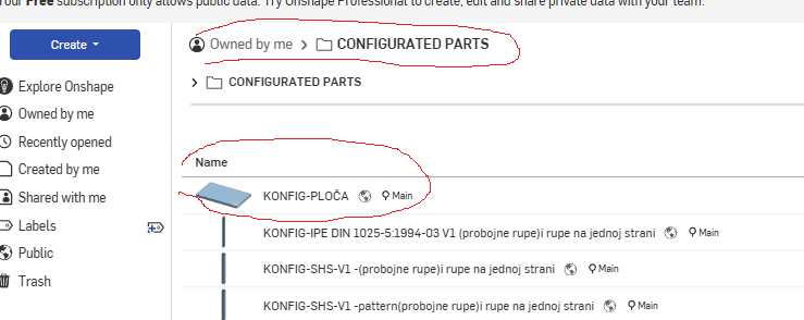 I have some problem with configurated parts. I am on free Onshape account.I make my own configurated part with some hole and dimensions, I have it in my library folder. I duplicate it, and insert like a part in some new project in part studio give it name "PART" and use it like a base in that project . Frome that place I will duplicate It more times in different variations and every time give different name "PART2", "PART3"...with different set of holes and dimensions. That parts I will insert and make assembly of it. Problem is when I open some of these configurated parts "PART 2", "PART 3"...It will look like its not configurated any more. It lost all holes and dimensions how I set it. Goes back in some early stage, without anything. Like Onshape lost configuration. I can not use release, cause I am on free account. If someone can help me ? Thanks in advance.