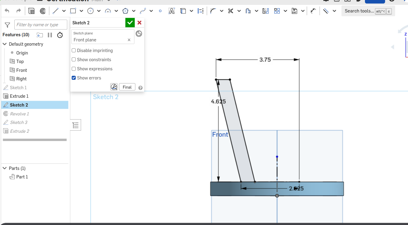 Double-check Sketch 2. I don't think the part is supposed to look like this:
