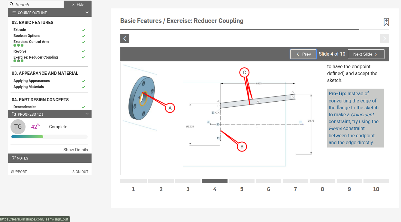 hey I currently trying to take the Introduction to Part Studios and I'm trying to make the part for it I tried to find any problems but I couldn't and I'm getting different sizes and surface area can I get some help, https://cad.onshape.com/documents/14547d652de9e1a3a496d85d/w/b2f1dea0dddd9491365aba92/e/9514e34d174575d6f8d5b0a8?renderMode=0&uiState=694438890944c63e58b70501
