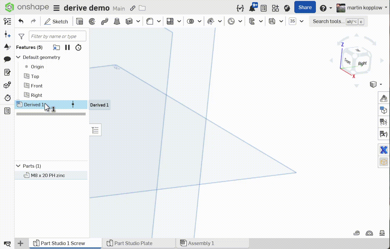 Anyway here's a demo of the above process. I used an external document that hase a configurator to create the fastener I wanted to use/derive. Then I used that for the part studio boolean and also for the assembly. After updating the initial config, both update: