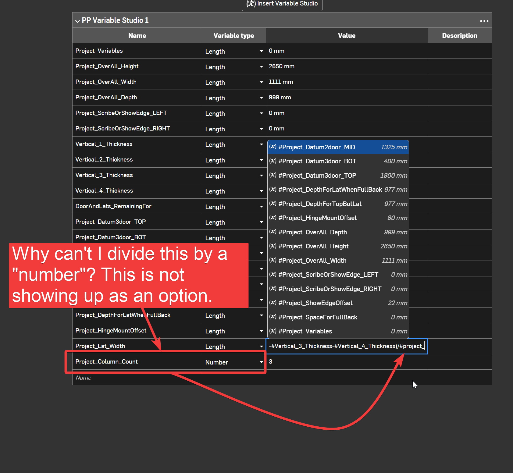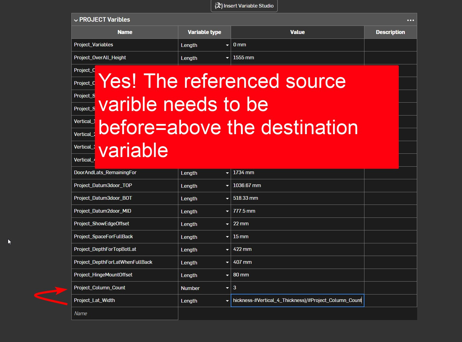 I think it needs to be "above" in the table. Variables in a part studio are defined in the feature tree and are ordered.