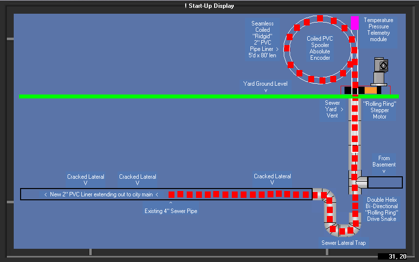 When this spring is rotated it forms an "articulated rolling ring drive" pulling the PVC repair liner down into the damaged sewer lateral all the way out to the city sewer main.
