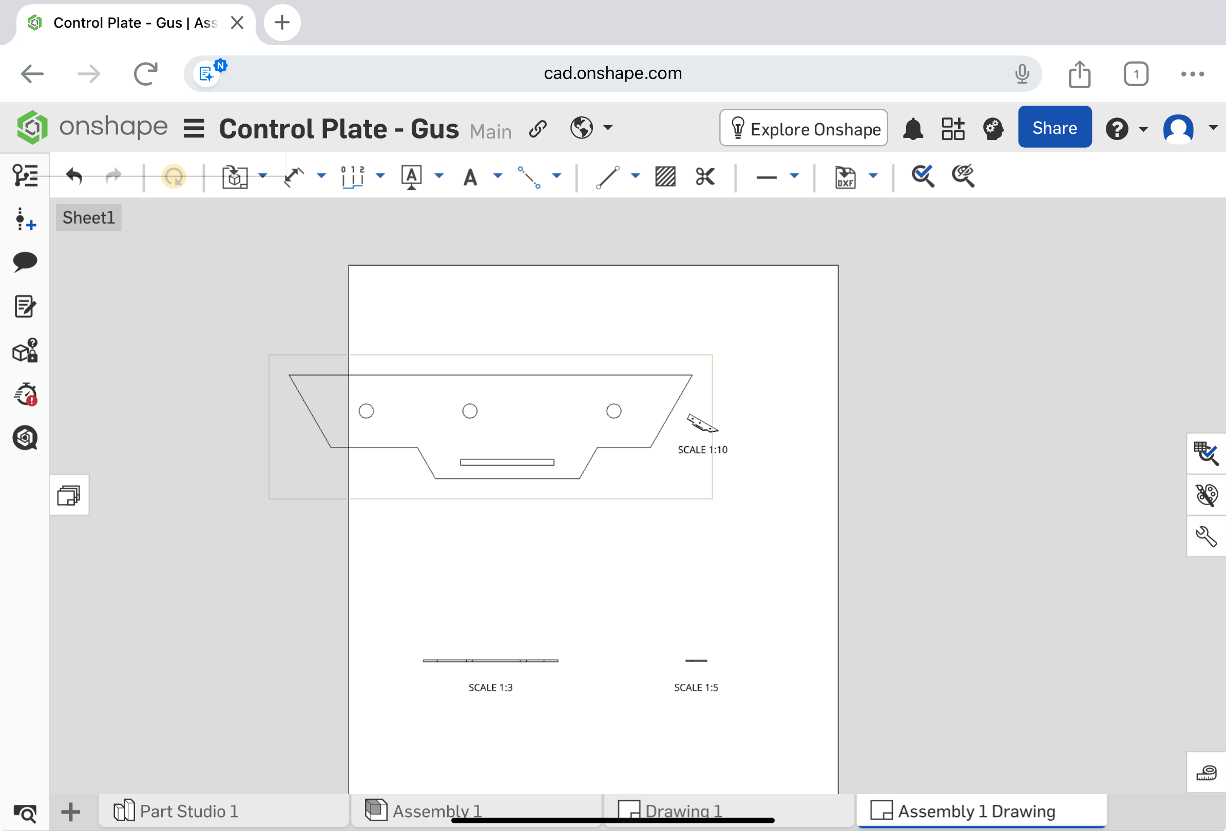 I also tried creating the drawing in the iPad version. As stated above, its problem was that it had multiple views and the scale was was not 1:1. . I was able to open this drawing in the iPad browser version and it looked like it did in the iPad version. I was able to change the scale of drawing and individual views, but again nothing else was editable.