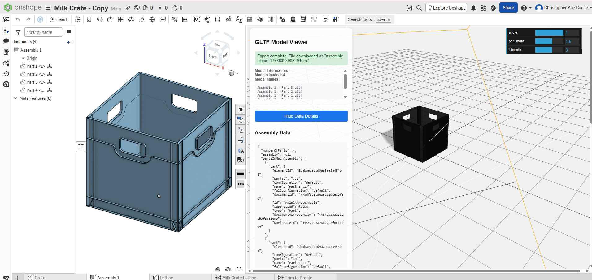 The extension embeds the GLTF geometry (and in my use case, assembly metadata) directly into the HTML, so it can be opened by anyone, without an Onshape account, and even offline.