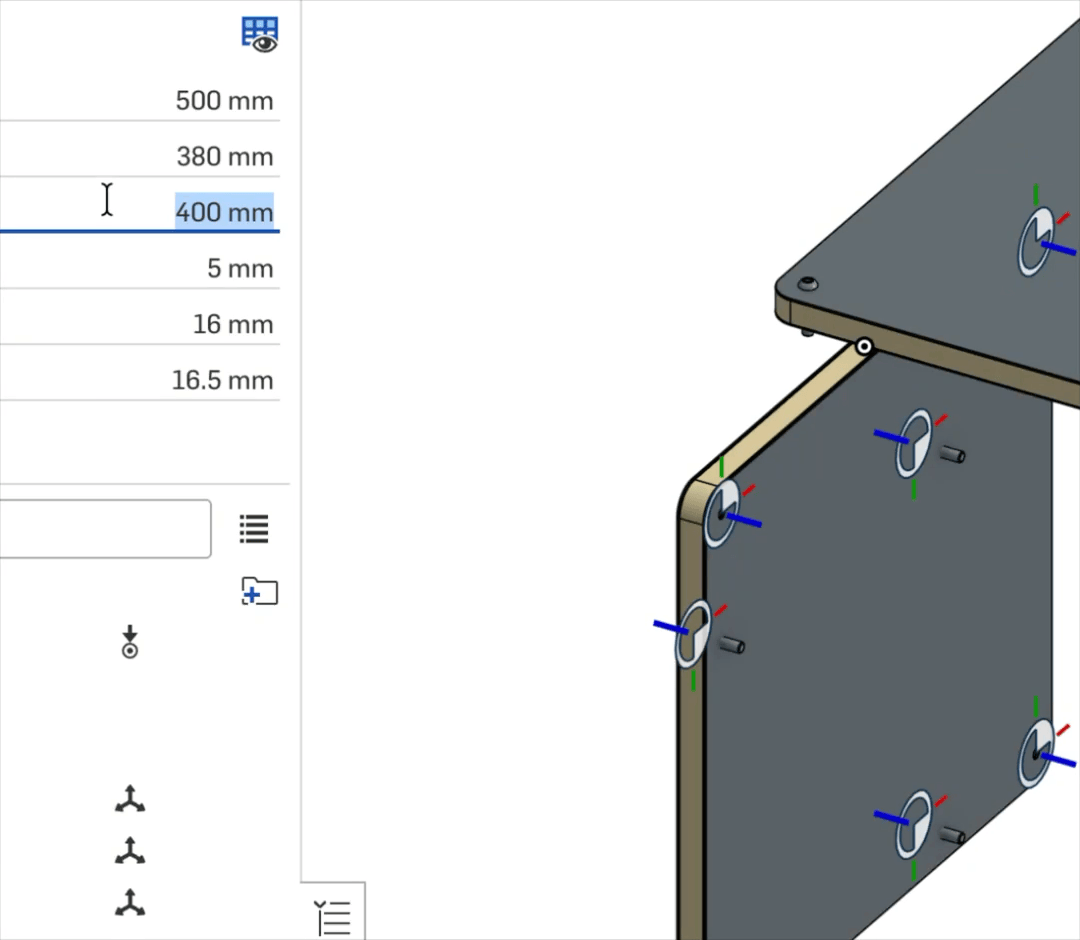 @john_mcclary I've sent you a private message. The expectation in the gif is that the bolts are always mated to the holes at the corners. However what you see is that they "float" at the value of 400mm. And they float at 300mm which is the default value of the configuration variable.