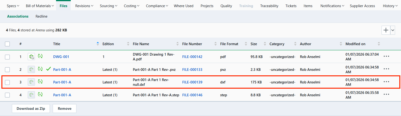 When a sync operation occurs at the creation of a release, Onshape now automatically generates a DXF of the flat pattern for any Sheet metal parts contained in the release candidate. The DXF file(s) are displayed in the Files view in Arena after being synced.