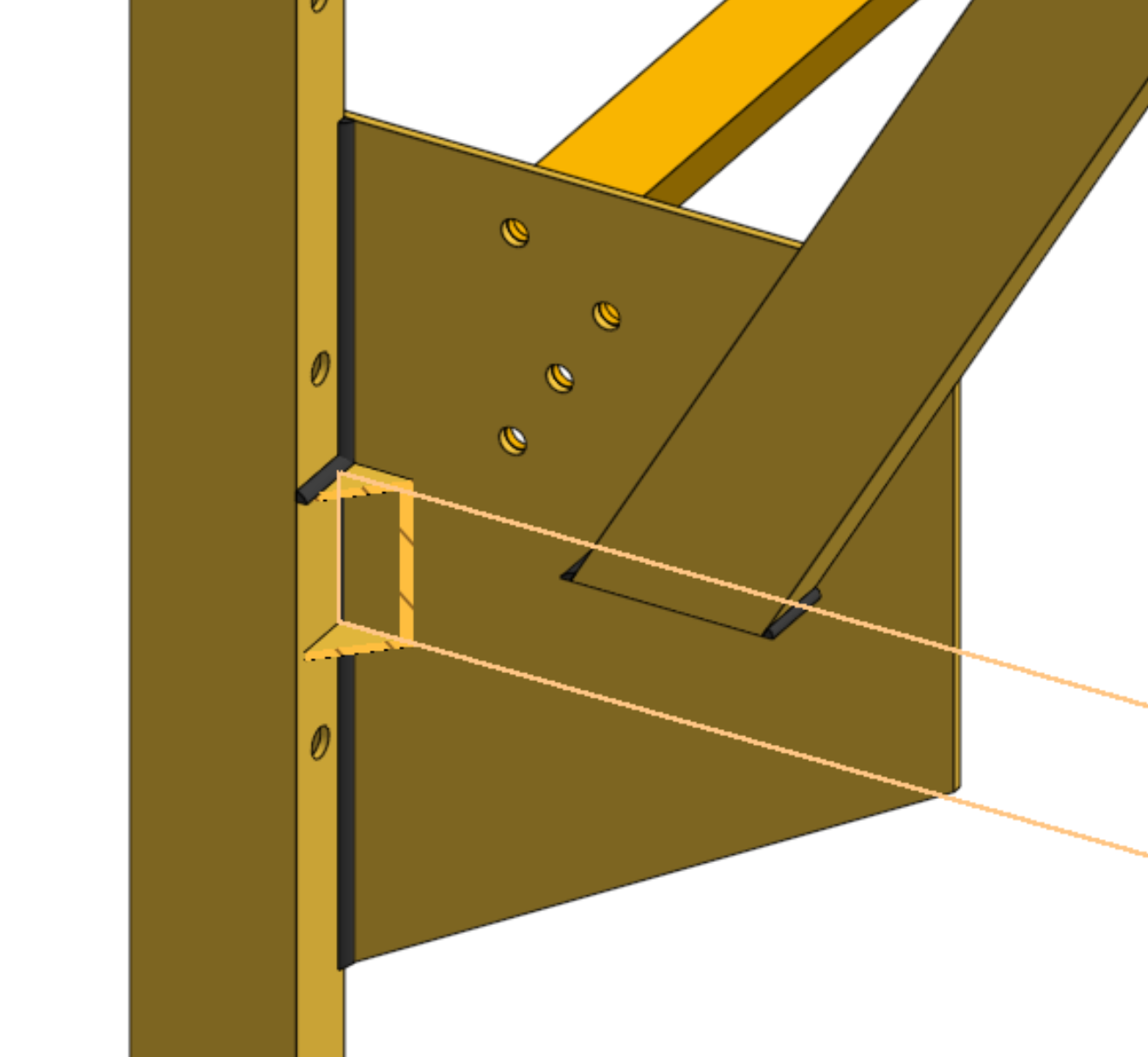 What is the best method to add partial welds to a (composite) part? The part consists of beams reinforced with plates that are welded on a few spots to the beams. The Weld feature script is great for drawing continuous welds, but what is the best way to draw a partial weld (indicated in blue)? Using the Weld feature script the weld continuous through the beam (see bottom picture).