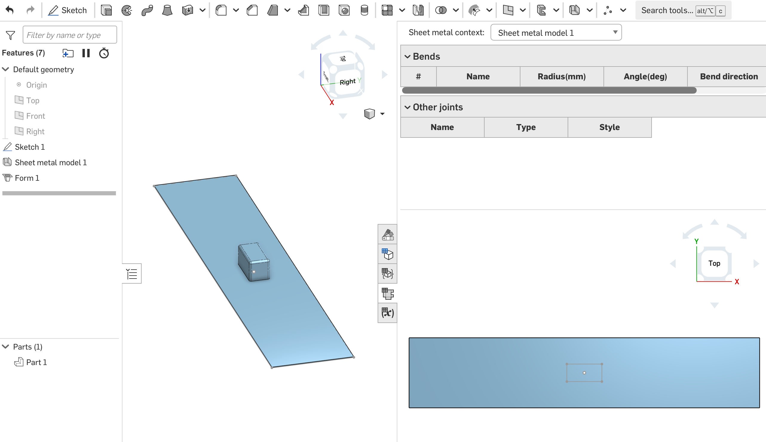 I'm also less concerned about stuff across bends. I've lived with that limitation for years in Solidworks, so it's less painful. Just being able to add extrusions or imported bodies to a sheet metal model on the flats would be amazing.