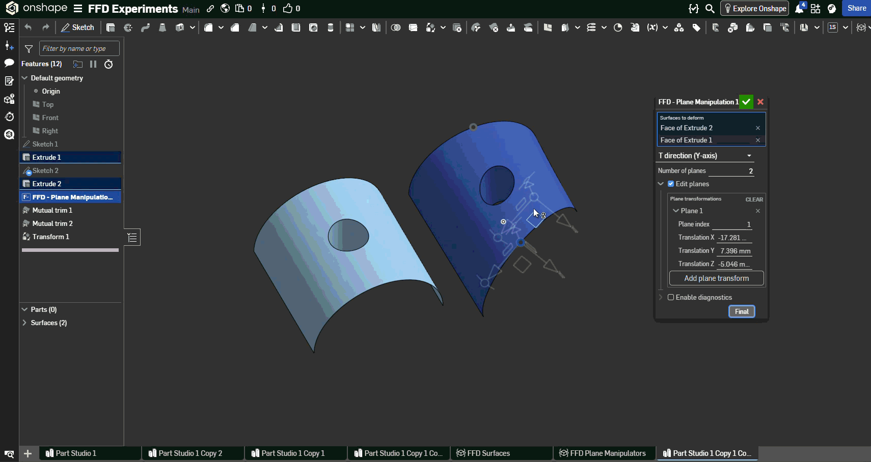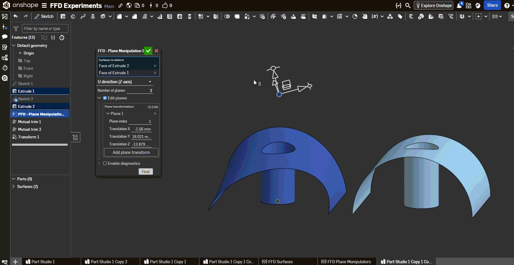 Lazy post this time because this is not really a feature. More like the concept of a feature. The people yearn for generalized object deformation in Onshape and I recently vibe coded up some core utilities that can offer a solution in that space but it's real rough stuff at the moment and y'all are gonna be waiting some while before I can chisel this script into something polished that does this job cleaner. Until then I'll publish what I've got and let the other featurescript gurus take a look inside if they're interested and work on improvements to this one-afternoon rough build of an FFD utility.