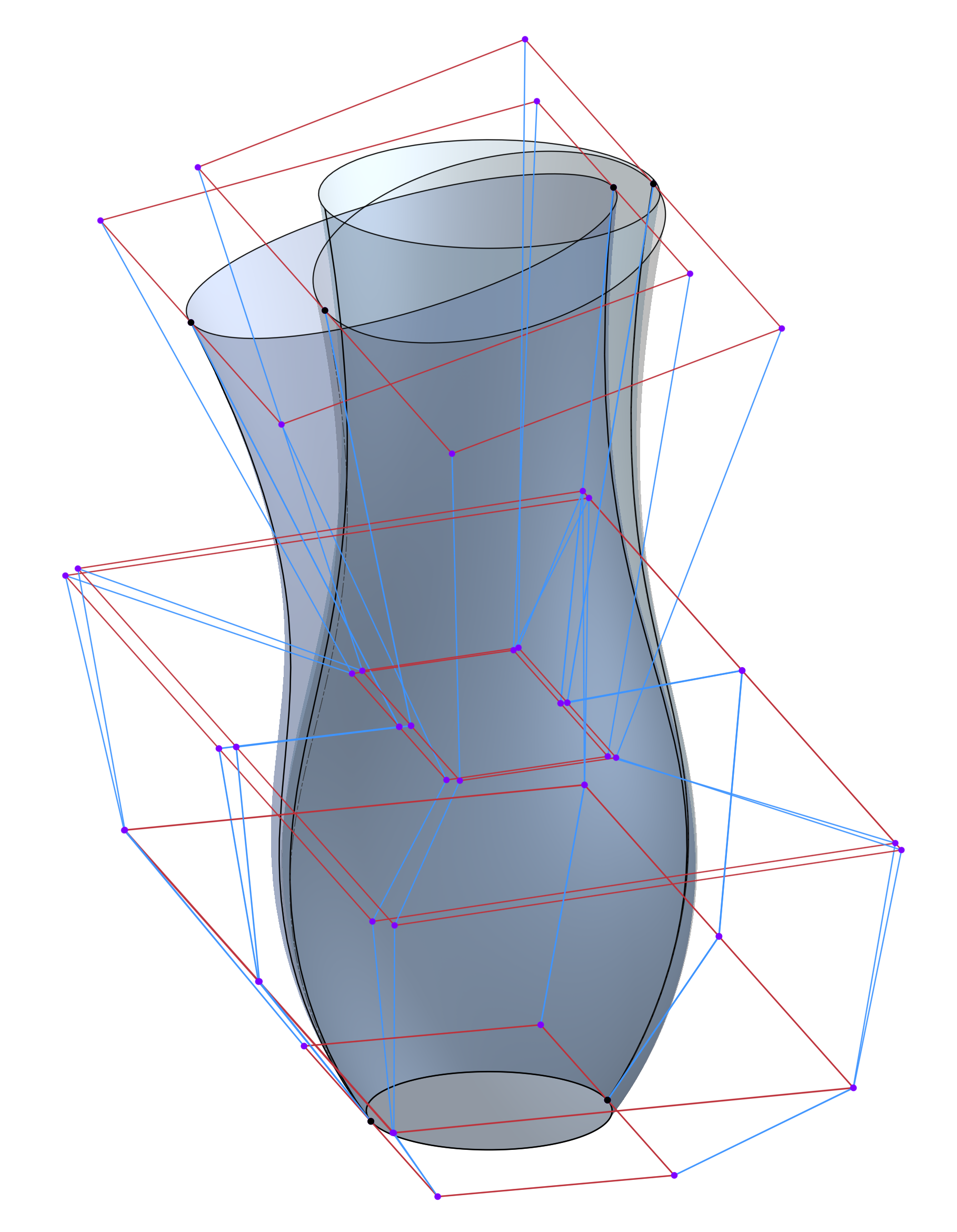 @S1mon Somewhere in that document is a tilty vase from a revolve surface that I squished and squashed to make something organic, then I did a Face Curves and a bunch of lofts to turn it into developable strips to turn into sheet metal with my no-safeguards sheet metal feature. Yours looks nicer than my quick attempt though. The full lattice feature was a little annoying to work with so I did a planar manipulator version that lets you do the things you see in the gifs but theoretically I could extend that even more to add scaling manipulators to the triad ones to get some taper action going.