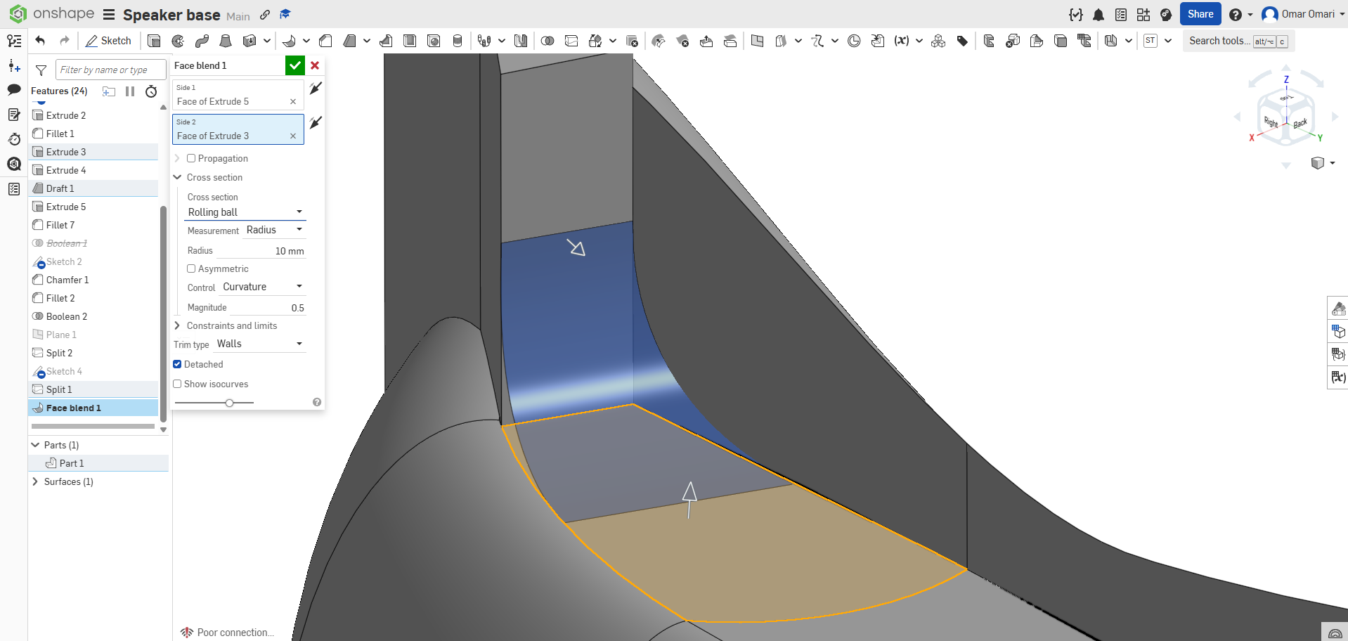 How can I face blend 3 surfaces?