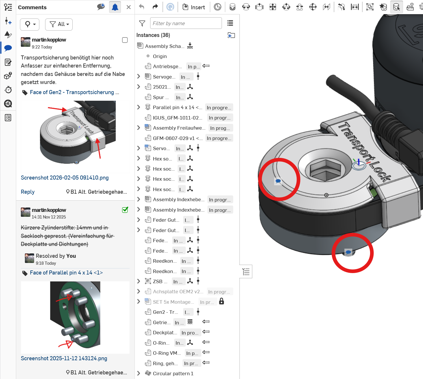 What about comments on the part studio level for part treatment, and on assembly level for mounting instructions? These will then show up as little clickable icons in the 3D model.