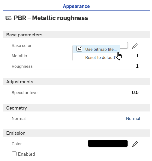 If what have have is a PBR style set of textures you probably have a base color, metallic, roughness and normal texture. If so you can search our appearance library for PBR and use the "PBR metallic roughness" appearance which has these parameters. If you just have generic textures you could also attach them to the "Flexible material model" appearance as a base if you prefer.