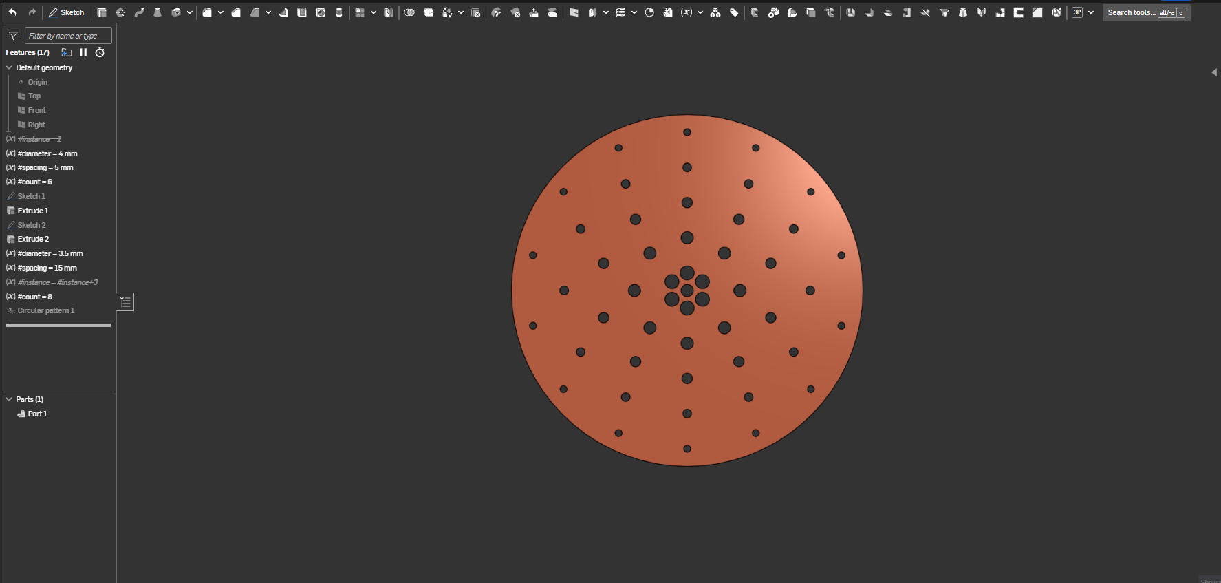 I was looking for a way to alter the distance between instances in a parametrically driven way and really cant make it work through circular pattern although i tried using expressions also. Have you got any idea on how should i go about making it. Should i just make a linear pattern of the circles and maybe drive the disctance between every 2 instances with a variable and then make a circular pattern ?