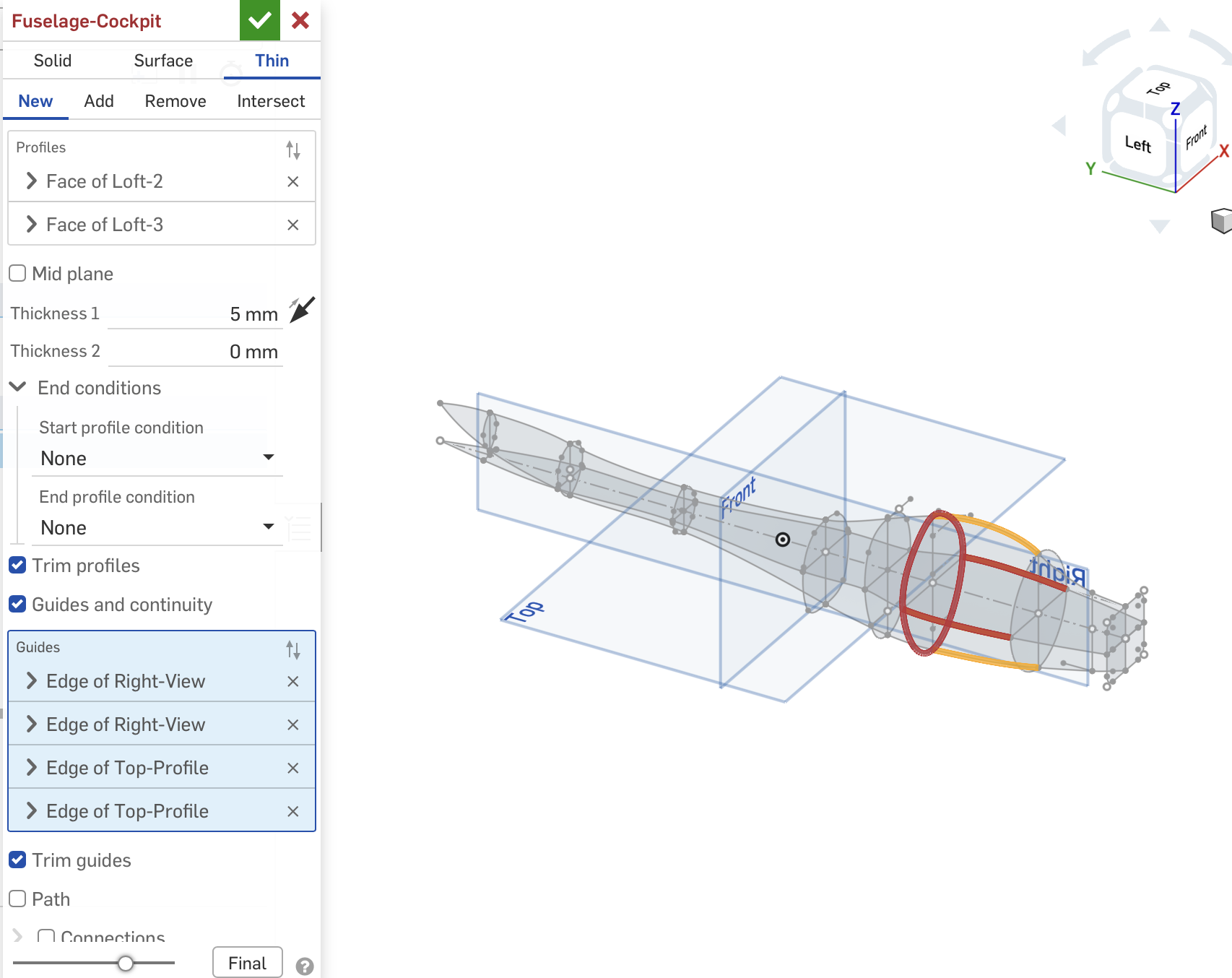 So im working on an aircraft model and I can't get the lofts to behave in the way I would like I want to have it so it follows a side profile whilst also following a top profile to ensure the surface of the loft is smooth and I can only ever get one not both could anyone offer a fix to this issue