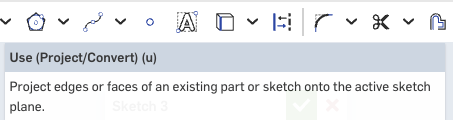 I'm running into a mental block regarding the "Use" tool. I can follow a specific example and get it to work, but for some reason can't figure out why it is failing when I try to apply it to a small part I'm trying to recreate. Basically, the issues is following a specific youtube video for Fusion. Everthing works up to the "Project" feature in fusion which I assume maps to the "Use" tool in Onshape. I've linked the video here and the issue I'm referring to occurs at the 2:43 mark. My question is, why "Use" in this situation. Could any other tool be used instead? Or, better yet, can someone walk me through how to get the "Use" tool to function in this scenario.