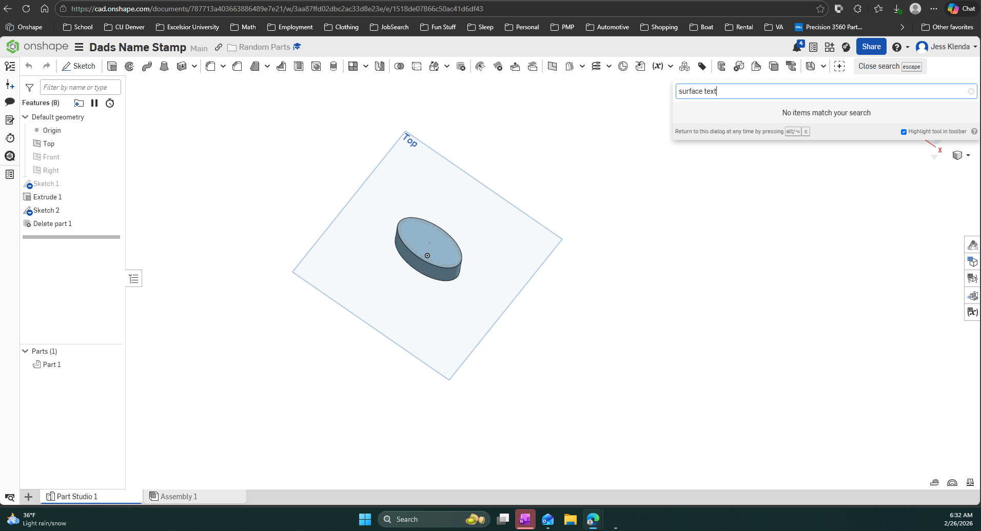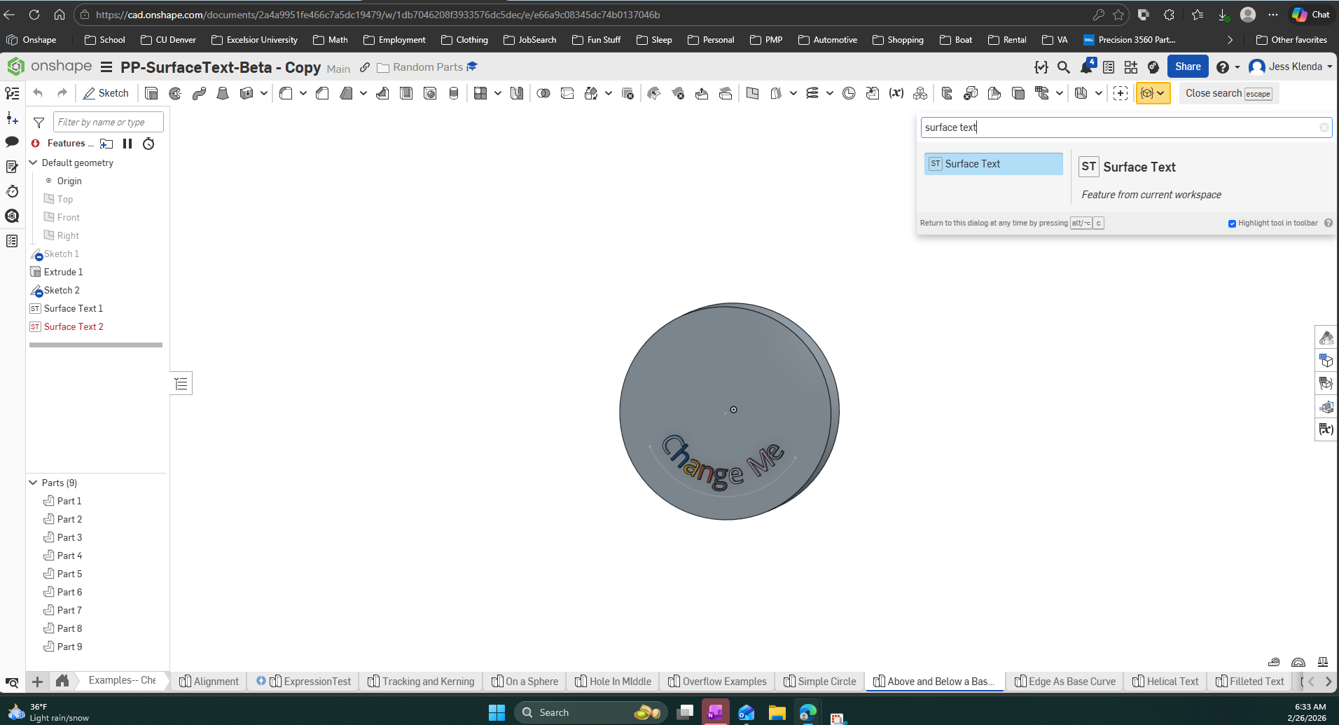 At least it looks like I can use your project to finish mine, but I'd like to figure this out so that I can use the surface text tool on future projects without having to build the model in the surface text proejct.