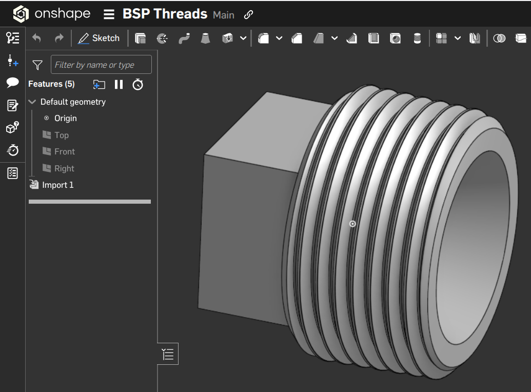 First day with Onshape, I need a actual BSP thread, G1 for a 3d printed plug