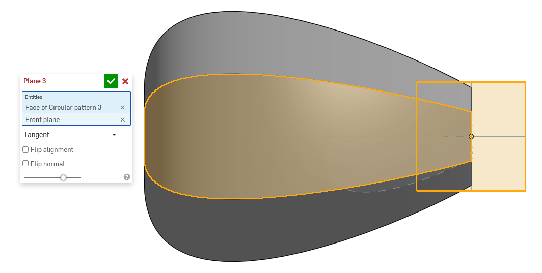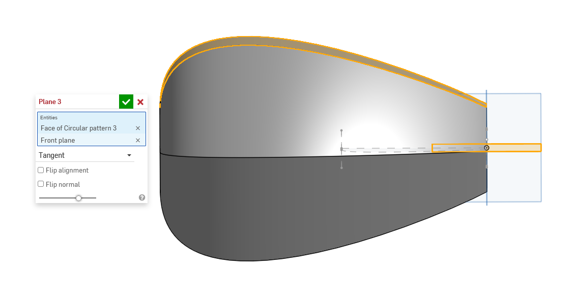 So I see that the tangent plane feature seems to only work with cylinders which seems quite limited. I would love to get a tangent plane to a general curved surface. It seems like if I make a minimum bounding cylinder, make the plane around that, then suppress that part I could get the desired plane, but I also cannot figure out the easiest way to make that minimum bounding cylinder.