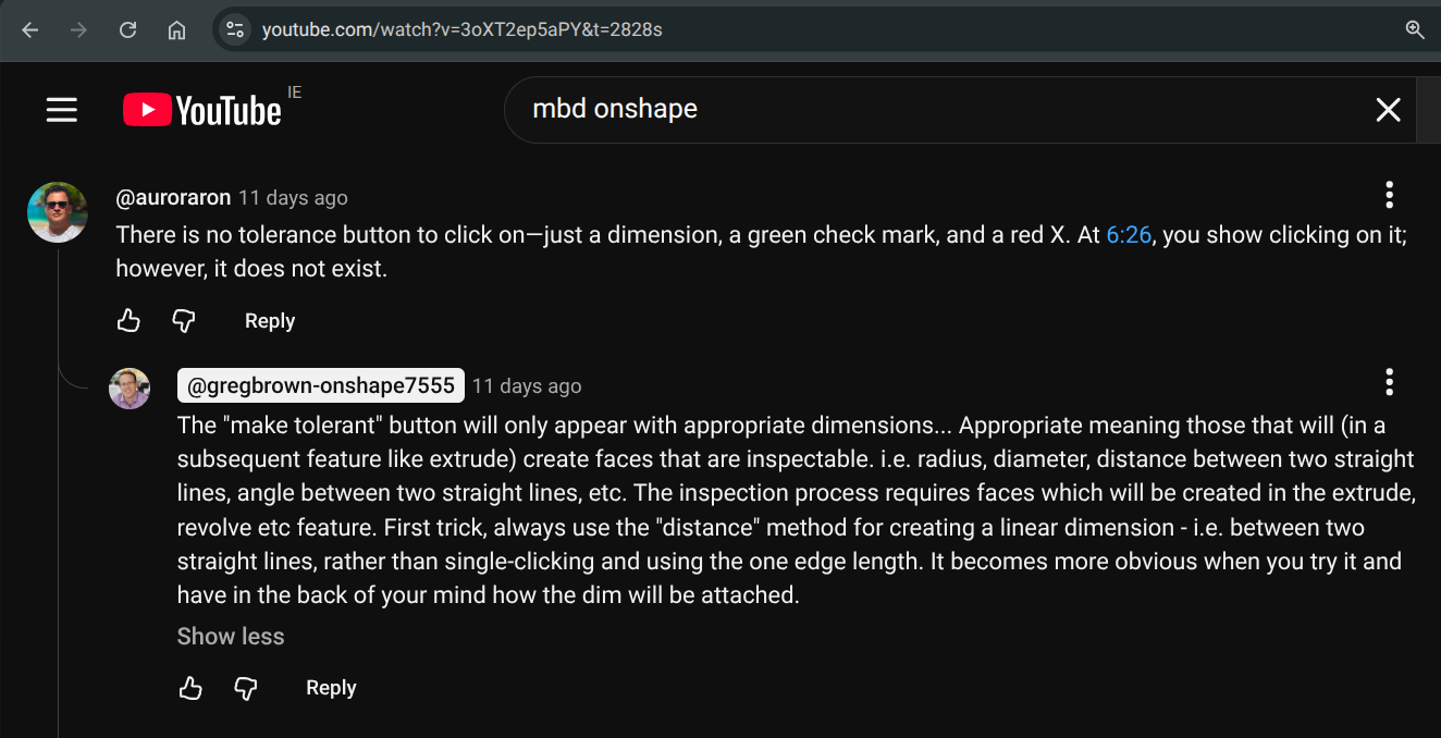 It would be useful if Onshape just made the tolerance button gray and if you hover over it, it could tell you that the dimension selection isn't compatible with MDB.