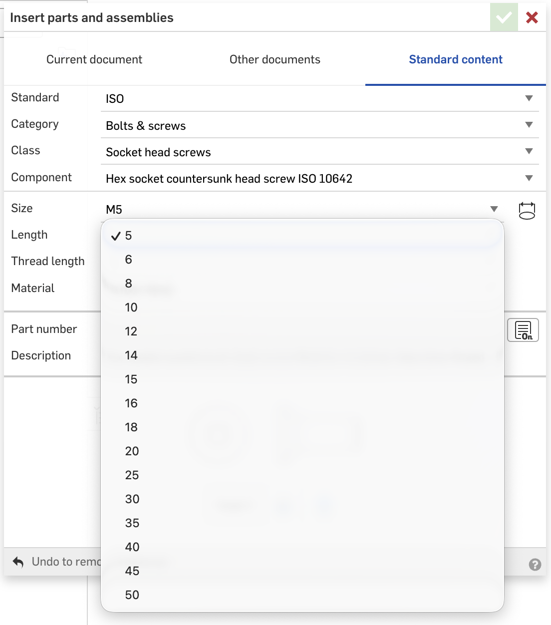 There is currently no option for an ISO socket head countersunk screw that is 14mm long - the list goes from 12mm to 15mm (see image 1).