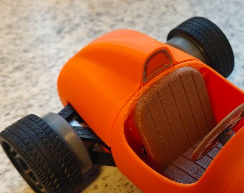Basically, it should be rounded in all directions and have a raised section behind the driver's seat, similar to classic race cars from the 1950s.