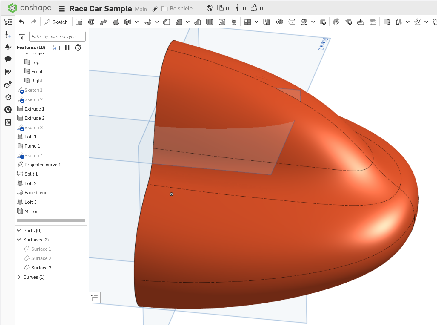 I've already tried using solids and fillets, etc., but quickly reached my limits, especially with the transition from the driver's cab to the rear. Then I started experiments with planes and lofts, and yesterday I found my master with 3D fit spline, composite curve, and surfacing ☹ Somehow, the generated surfaces always turn red (if any are created at all) and have cracy shapes.