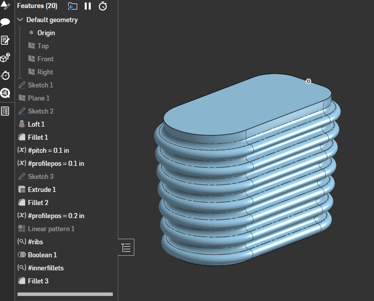 New to onshape and struggling with getting some ribs on the surface of this part.