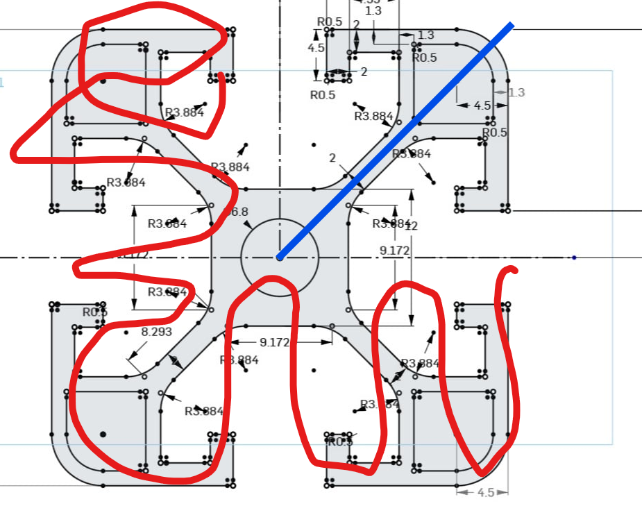 When doing symmetrical stuff try to break it down to a single repeatable piece of geometry to simplify things and use the bare min of constraints. In the case of your extrusion, you can easily see you can just do 1/4 of the design and save a lot of constraint headache. You can even take it further and just do 1/8 if you wanted to. The other 7/8 is just sequential mirror operations.