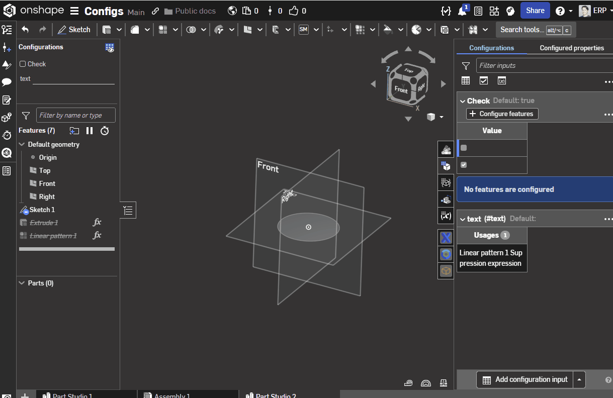 I tried adding a variable and tying suppression to that. And it works. However, it appears that the configuration variable doesn't automatically update when I switch configurations. What the hell, man! It's called a configuration variable, shouldn't it have a different value for each configuration? I can easily add a variable as a feature, put it at the top of the features list, add it to the configuration, set the value for each configuration, and then set a dynamic suppression expression based on that variable. But this… doesn't seem right. I'm pretty sure I should be able to do this entirely in the configuration panel, i.e. without creating a feature variable.