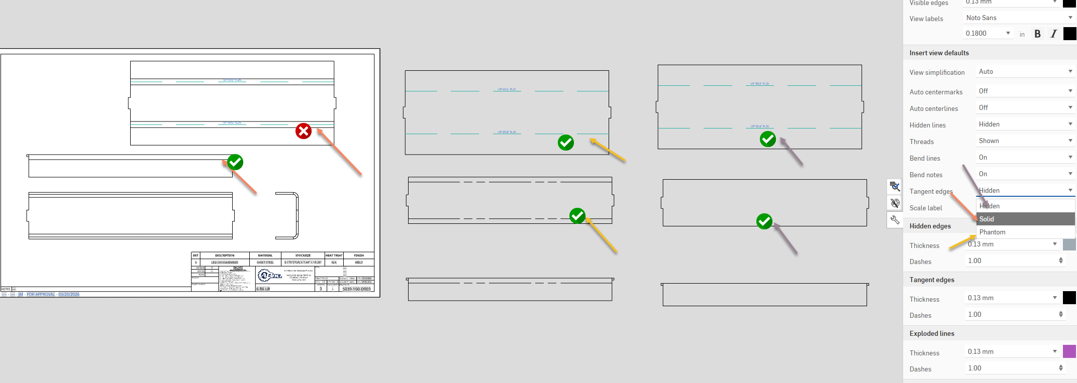 those two still work fine and don't show tangents in the flat pattern.