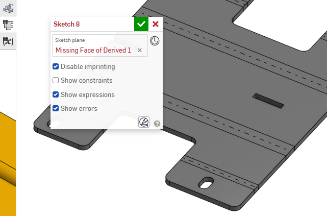 Here is a quirk I just encountered for the first time today. I'm deriving a sheet-metal part from another part studio (it's built off adjacent geometry) I checked the box to import as active sheet-metal (which is a nice recent feature) But for some reason this one behaves.. different…