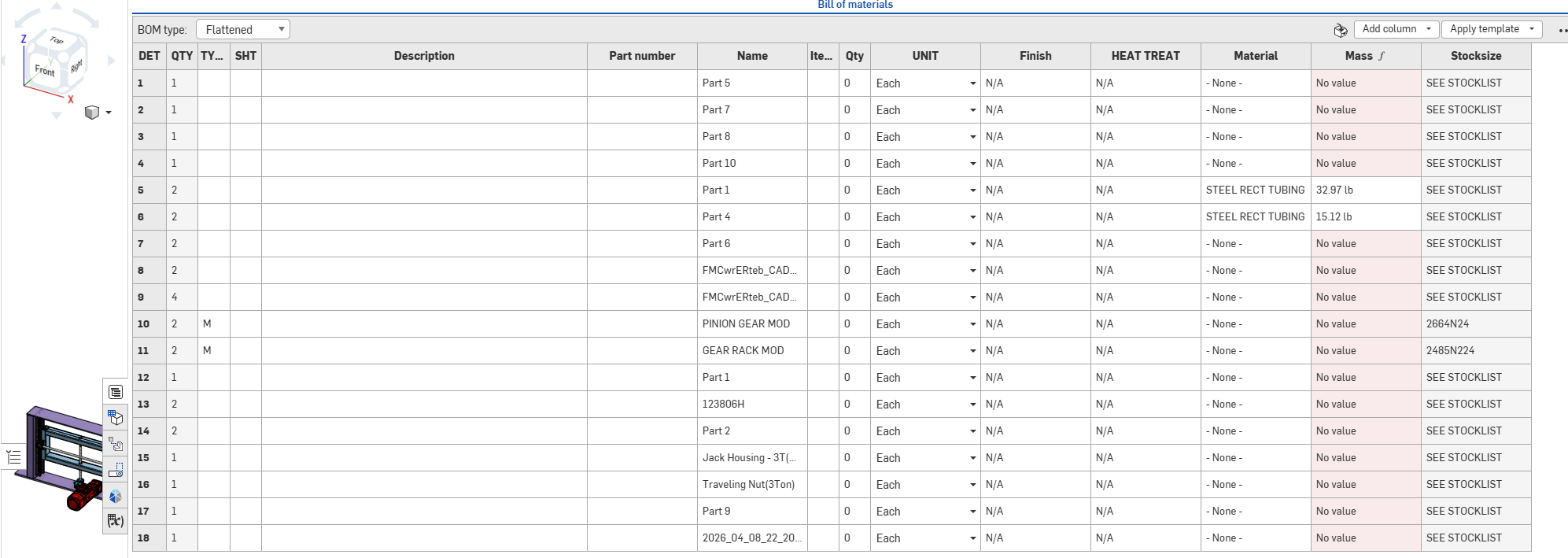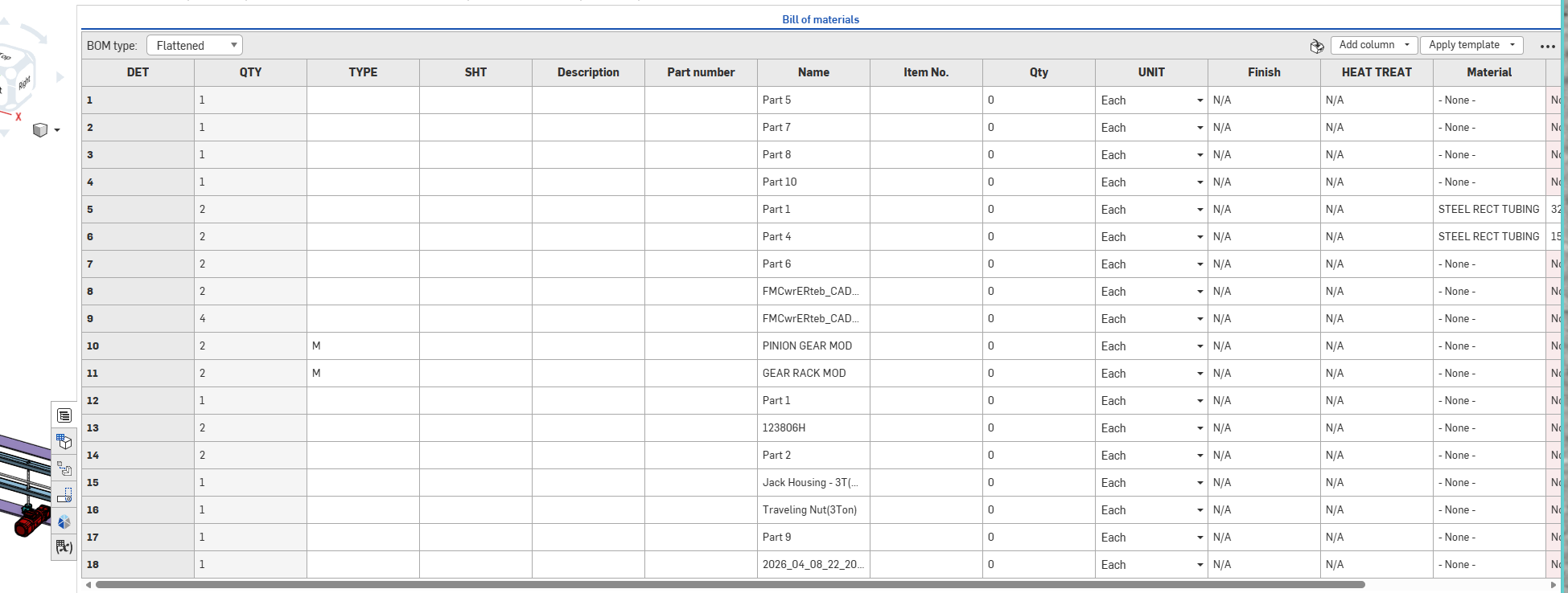 Resize BOM table in company settings teased me for a minute. I assumed you were able to adjust the default width of each column. So, when you use them in an assembly, they will already be a width that makes sense. For example, Det, Qty, etc. don't need to be so wide, just wide enough to read DET, QTY, but Description should be much wider. I use the BOM to examine and fill in all the meta data at the end of a project. it's annoying to have to resize all the columns to see all the info in one view
